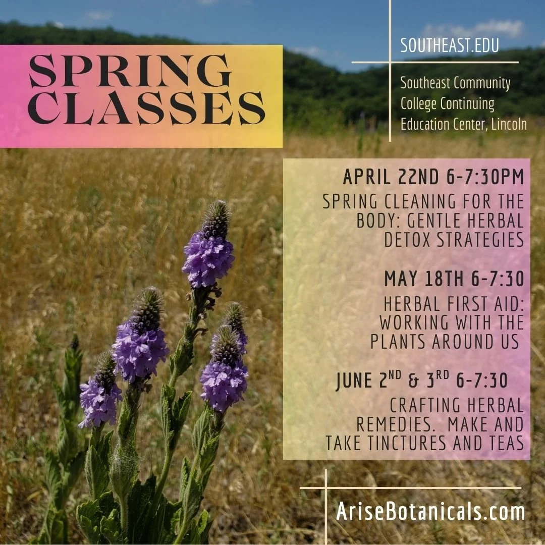 Each season Arise Botanicals holds classes in conjunction with Southeast Community College. All classes will be held at the continuing education center on 68th and O St. in Lincoln. Registration is live at southeast.edu, (search with keyword HERB).
